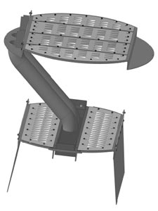 Узел перетока с 1- поточной тарелки на 2-х поточную