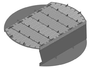 Тарелка трапециевидно-клапанная двухпоточная с центральным переливом |